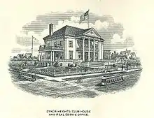 One of the many focal points of the neighborhood was the Dyker Heights Club, which started in October 1896.[10] By spring of 1898 the club had a $30,000 clubhouse designed by Albert Edward Parfitt on an $8,500 lot, measuring 200×200, located on the northeast corner of 13th Avenue and 86th Street. Johnson moved his real estate office into the clubhouse and hired a full-time architect, Constantine Schubert, who was also a Dyker Heights homeowner. This grand, neo-classical building was demolished in 1929 by the Archbishop John Hughes Knights of Columbus Club, when they acquired the property for $60,000.[22]