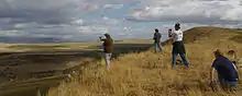 In the late 1990s, radio-controlled gliding awoke to the idea of dynamic soaring (a "discovery" largely credited to RC soaring luminary Joe Wurts).[3] Radio-controlled glider pilots perform dynamic soaring using the leeward side of ground features such as ridges, saddles, or even rows of trees. If the ridge faces the wind, and has a steep back (leeward) side, it can cause flow separation off the top of the hill, resulting in a layer of fast air moving over the top of a volume of stagnant or reverse-flow air behind the hill. The velocity gradient, or wind shear, can be much greater than those used by birds or full scale sailplanes. The higher gradient allows for correspondingly greater energy extraction, resulting in much higher speeds for the aircraft. Models repeatedly cross the shear layer by flying in a circular path, penetrating a fast-moving headwind after flying up the back side, turning to fly with the wind, diving down through the shear layer into the stagnant air, and turning again to fly back up the back side of the hill. The loads caused by rapid turning at high speed (the fastest models can pull over 100 Gs) require significant structural reinforcement in the fuselage and wing. Because of this, dynamic soaring models are commonly built using composite materials.