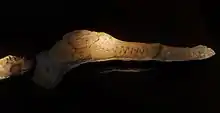 The dyrosaurids were a group of mostly marine, long jawed, crocodile-like quadrupeds up to 6 metres (20 ft) long.[1] Based on bone tissue evidence, it has been hypothesized that they were slow-growing[2] near-shore marine animals with interlocking closed jaws,[2] able to swim as well as walk on land. External nostrils at the posterior end of its snout and an internal naris in its pterygoid indicated a habit of hunting while swimming with the top of the head above the water, enabling it to breathe while stalking prey.[1]