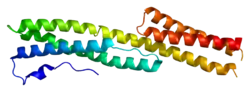 - Tang HY, Chaffotte AF, Thacher SM (April 1996). "Structural analysis of the predicted coiled-coil rod domain of the cytoplasmic bullous pemphigoid antigen (BPAG1). Empirical localization of the N-terminal globular domain-rod boundary". The Journal of Biological Chemistry. 271 (16): 9716–22. doi:10.1074/jbc.271.16.9716. PMID 8621649.