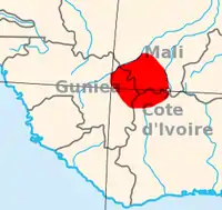 The Dyula spread throughout the former area of Mandé culture from the Atlantic coast of Senegambia to the Niger and from the southern edge of the Sahara to forest zones further south. They established decentralized townships in non-Muslim colonies that were linked to an extensive commercial network, in what was described by professor Philip D. Curtin as a “trading diaspora.” Motivated by business imperatives, they expanded into new markets, founding settlements under the auspices of various local rulers who often permitted them self-governance and autonomy. Organization of dyula trading companies was based on a clan-family structure known as the lu - a working unit consisting of a father and his sons and other attached males. Members of a given lu dispersed from the savanna to the forest, managed circulation of goods and information, placed orders, and effectively controlled the economic mechanisms of supply and demand.[3]