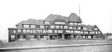 Gustav Stickley promoted the Arts and Crafts movement in the United States through his furniture designs and by founding The Craftsman magazine in October 1901.[11] The Arts and Crafts ideals of unnecessary ornament; local, natural materials; and fine workmanship were a natural fit with Dietrich's own ideals and design style. In the February and April 1903 editions of The Craftsman, Dietrich's “The Cottage Quality” presented views, floorplans, and an essay describing the virtues and thoughts behind his design.[12][13] Then in May 1903, the magazine published the first “Craftsman House” a design by Dietrich in cooperation with Stickley.[2] Featuring an essay and drawings by Dietrich including an exterior view, floor plans, and detailed interior views showcasing Stickley furniture, this was the first time this term had been used in the magazine and was the precursor to the “Craftsman Homes” series starting in 1904.