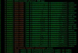 BIOS-e820 is often the first thing reported by a booting Linux kernel, and it can also be seen with the dmesg command.
