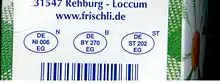 - Germany: dairy processor codes, meat and dairy processor codes, region code (similar to ISO 3166-2:DE)