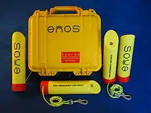 ENOS stands for "Elektronisches Notruf- und Ortungssystem" – "Electronic Rescue and Location System" - a system developed in Germany for use by divers at sea.[1] ENOS allows people in distress to signal their location when drifting on the ocean's surface so they can be quickly located and rescued. Although the system was especially developed for scuba diving it can also be used for other water sports like windsurfing, jet skiing, sailing and boating.
