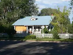 Ten of the contributing properties of the historic district were built during the 1920s: seven bungalow-style houses, a folk house, a commercial building and a barn.[10] The barn was part of the Joe Udall homestead, which consisted of an adobe house and the barn, which at the time was the largest barn in the town.[11] The last three contributing buildings were all constructed around 1930. They were pueblo revival style house located at 266 North Main Street, a pueblo revival style duplex which sits at 28 North Main Street, and the Spanish colonial revival style house located at 60 East Central Avenue.[12]