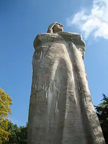 Standing prominently on Eagle's Nest Bluff is Lorado Taft's famed Black Hawk Statue; the bluff is now part of Lowden State Park. The statue was created by Lorado Taft, beginning in 1908. Taft at first created smaller studies of what would become the statue. The statue itself was dedicated in 1911, Taft noted at the dedication that the statue seemed to have grown out of the ground.[12] The statue stands 125 feet (38 m) above the Rock River, though its height only accounts for 48 feet (15 m) of that. Black Hawk weighs in at 536,770 pounds and is said to be the second largest concrete monolithic statue in the world.[13]