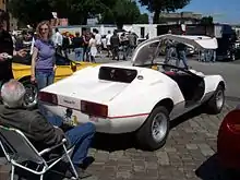 Eagle Cars' fibreglass-bodied Jeep-lookalike, the Jeep RV,[9] was built around Ford Cortina parts. There was also an Eagle RV 4X4 (Range Rover, later also Daihatsu Fourtrak/Rocky based), unusual for kit cars in that it had four-wheel drive. The RV used an X-braced ladder frame and the expected Ford engines, although the Ford Capri's 3-litre V6 and the usual Rover V8 were also possible fitments,[10] while the Eagle 4x4 was available with a whole host of different engines from Rover, Mercedes, Peugeot, or Ford.[11] Later a Ford Sierra-based two-seater, two-door convertible (also available with a hardtop) called the Milan 2 Plus.[2] This was first seen in 1988 and was co-developed with "Milan-Automobile" of Remscheid, Germany.[7] Since it accepted all Sierra underpinnings, the Milan was available with engines ranging from 1.6 to 2.8 litres and with either rear-wheel drive or all-wheel drive.[12] During the eighties, an RV Jeep Series II was developed, using more modern Ford Sierra parts.[10]