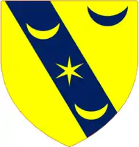 Or on a Bend Azure a Mullet of six points between two Crescents of the field, a Crescent for difference