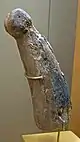 EEMH also carved perforated batons out of horn, bone, or stone, most commonly through the Solutrean and Magdalenian. Such batons disappear from the archaeological record at the Magdalenian's close. Some batons seem phallic in nature. By 2010, about 60 batons had been hypothesised to be representations of penises (all with erections), of which 30 show decoration, and 23 are perforated. Several phallic batons are depicted as circumcised and seemingly bearing some ornamentation such as piercings, scarification, or tattooing. The purpose of perforated batons has been debated, which suggestions for spiritual or religious purposes, ornamentation or status symbol, currency, drumsticks, tent holders, weaving tools, spear straighteners, spear throwers, or dildos. Unperforated phallic batons, measuring 30 (11.8 in) to a few centimetres long, were quite early on interpreted as sex toys.[66]