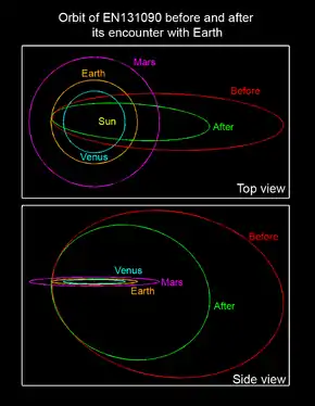 | Orbital characteristics[5] | Before encounter | After encounter |
