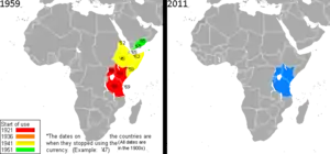 The East African shilling was the currency issued for use in British controlled areas in East Africa from 1921 until 1969.[1] It was produced by the East African Currency Board. It is also the proposed name for a common currency that the East African Community plans to introduce.