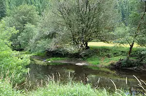 Rodine Creek enters from the left about 2 miles (3 km) later. Just below the confluence with Rodine Creek, Nesika County Park is on the left, and Hodges Creek enters from the left. Less than a mile from Allegany, Marlow Creek enters from the right and then Nowlit Creek, also from the right, before the East Fork meets the West Fork to form the Millicoma. East Fork Millicoma Road runs parallel to the river for much of its course.[4][5]