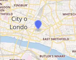 In 1648, therefore, it took a lease on the adjoining property, Craven House, a late Elizabethan mansion built by Sir Robert Lee, Lord Mayor of London, and named after one of his successors, Sir William Craven, who had occupied it at a later date.[4][5] By 1661 the building was known as East India House. In that year, the frontage was given an ornamental wooden superstructure decorated with paintings of some of the Company's ships, and surmounted by a wooden sculpture of a seaman.[6] Over the years following, various improvements and extensions were made to the premises; and in 1710 a contract was signed for the Company to buy the property from Lord Craven (although the purchase was not in fact completed until 1733).[7] Further extensions were made, but by the mid 1720s the mansion was considered to be in such poor condition, and the Company's need for additional space so pressing, as to justify complete rebuilding.[8] To allow this to take place, the Company moved into temporary premises in Fenchurch Street early in 1726.[9]