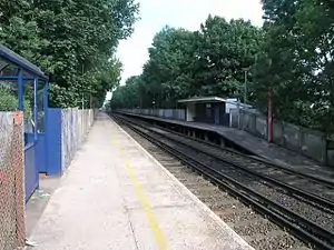 The ticket office here closed by 1988; it was located in a wooden building on the up (London-bound) platform, where the part retained as a shelter continues in use. A PERTIS 'permit to travel' machine, located at road level at the foot of the steep staircase to the up platform, suffices. There is a metal shelter on the down platform, where extensive underpinning of the concrete platform took place in 2006. The platforms were extended in the late 1980s to take 8-car trains, having previously been of 6-car length only.