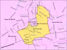 East Norwich was originally named Norwich, until the postal service requested the name change to eliminate confusion from the other Norwich, in Chenango County.[1]