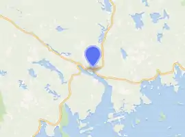 The predecessor to the current bridge was located in Sheet Harbour, in the eastern area of the Halifax Regional Municipality, along the Eastern Shore. It was a green steel arch bridge, and was built in 1956 over the Northeast Arm of Sheet Harbour. It had a half-through, two-hinge type arch, as well as a built-up box-cross section for support.[5][6] The bridge was 213 metres (699 ft) in length, with a main span of 140 metres (460 ft).[1][5] The bridge had engineering ties with the Angus L. MacDonald Bridge in Halifax. The deck carried the two lanes of Trunk 7 and by extension the Marine Drive scenic route, and was hung from the arch by vertical steel wide flange shape hangers. The ribs of the bridge were heavily reinforced in 1988.[6] As the bridge neared the end of its lifespan, it was replaced by a new bridge with the same name. Unlike the old bridge, the new bridge was designed without overhead steel arches that would have doubled the cost.[3]