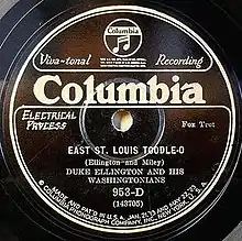 "East St Louis Toodle-Oo" (also "Toodle-O") is a composition written by Duke Ellington and Bubber Miley and recorded several times by Ellington for various labels from 1926–1930 under various titles.[1] This song was the first charting single for Duke Ellington in 1927 and was one of the main examples of his early "jungle music".[2] This composition was covered by Steely Dan on their 1974 album Pretzel Logic.