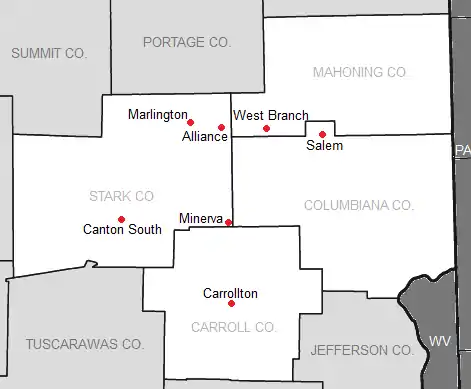 On February 4, 2016, the Northeastern Buckeye Conference voted to disband, and all conference members except for Louisville agreed to form a new league.[2] On June 1, 2016, WKBN-TV 27 Youngstown reported that Alliance, Canton South, Carrollton, Marlington, Minerva, Salem and West Branch would form the Eastern Buckeye Conference for the 2018-2019 school year. South Range was initially on board to join as the eighth member of the league, but announced near the end of the 2016–17 school year that it would join the new Northeast 8 Athletic Conference for 2018–19.[3][4][5]
