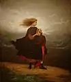 A Ride for Liberty – The Fugitive Slaves (1862), which depicts a slave family riding at dawn to freedom, also invites interpretation. Johnson places the slave family squarely in the center of the work, acting as agents of their own destiny.[21] It appears to be dawn and in the distance is light on bayonets, indicating Union lines.[21] A man rides with a child in front of him; behind him, a woman holds an infant close to her chest. She looks behind her as if worried about pursuers, or wondering what she left behind.[21] Curator Eleanor Harvey writes the painting "captures the moment when the full scope of the slavery question begins to loom. Johnson placed these people squarely in the foreground and, in doing so, elevated their plight in the national debate."[21]