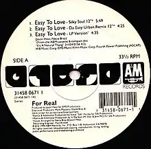 "Easy to Love" is the title of a R&B single by For Real, it was the second single from their debut album It's a Natural Thang. Billboard magazine noted "super-tight harmonies that are prominent, but not overshadowing; instantly memorable melody stands as the cut's focal point.[1]