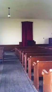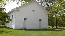 The Ebenezer Methodist Episcopal Chapel and Cemetery is a historic church located northwest of Golden, Adams County, Illinois. The church was built in 1858-59 for the local Methodist Episcopal congregation. The church has a vernacular Greek Revival design; while the style was common in Illinois before the Civil War, the church is now the only one of its type in the county. The church is a white sided building on a limestone foundation; it is topped by a gable roof with a simple entablature at either end. The church's cemetery, located to the west of the building, has had burials since 1857 and contains both members and non-members of the church.[2]