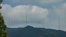 Ebino VLF transmitter is a large transmitter for transmitting orders to submerged submarines, situated near Ebino, Miyazaki in Japan. Ebino VLF transmitter, which was completed in 1991, is used by the Japanese Navy to transmit orders to submerged submarines on the frequency 22.1 kHz with the callsign JJI. The antenna system is carried by eight masts, each 270 metres tall, which are arranged in two rows.