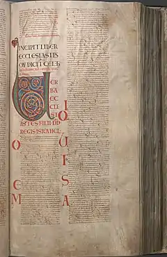 Ecclesiastes 1 is the first chapter of the Book of Ecclesiastes in the Hebrew Bible or the Old Testament of the Christian Bible.[1][2] The book contains philosophical speeches by a character called Qoheleth (="the Teacher"; Koheleth or Kohelet), composed probably between 5th to 2nd century BCE.[3] Peshitta, Targum, and Talmud attribute the authorship of the book to King Solomon.[4] This chapter contains the title of the book, the exposition of some basic facts and the problem of life, especially the failure of wisdom.[5]
