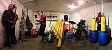 Echo City is a British sound sculpture and music project founded in London in 1983 by Van der Graaf Generator member Guy Evans, Giles Leaman, and Giles Perring. Its current active members are Guy Evans, Julia Farrington, Rob Mills, Giles Perring and Paul Shearsmith.[1] Susie Honeyman of The Mekons is a former member of the group. The project builds giant musical instruments and sound sculptures called "sonic playgrounds", but Echo City has since 1985 also performed as a band.