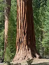 North of Tahoe, the mid-montane forest has more white fir and Douglas-fir, and less ponderosa pine than further south. Jeffrey pine occurs on ultramafic lava soils.[9] In Yosemite and points south, giant sequoia occurs in wetter locations.[9]