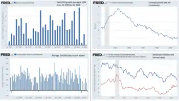 - Average real GDP growth of 3.8%, compared to average growth of 3.1% from 1970 to 1992. The economy grew every quarter.[45]