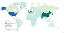 California has historically derived significant revenue from international trade and tourism. However, the state's share of America's merchandise export trade has been steadily shrinking since 2000, from 15.4% to 11.1% in 2008.[32] The exports of goods made in California totaled $134 billion in 2007. $48 billion of that total was computers and electronics, followed by transportation, non-electrical machinery, agriculture, and chemicals. California trade and exports translate into high-paying jobs for over one million Californians. According to the US Bureau of Economic Analysis (BEA), in 2005, foreign-controlled companies employed 542,600 California workers, the most of any state. Major sources of foreign investment in California in 2005 were Japan, the United Kingdom, Switzerland, France, and Germany. Foreign investment in California was responsible for 4.6 percent of the state's total private-industry employment in 2009.[33] Total direct travel spending in California reached $96.7 billion in 2008, a 0.8% increase over the preceding year.[34] Los Angeles County receives the most tourism in the state.[34]