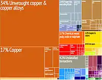 During 2012, the largest sectors by GDP were mining (mainly copper), business services, personal services, manufacturing and wholesale and retail trade. Mining also represented 59.5% of exports in the period, while the manufacturing sector accounted for 34% of exports, concentrated mainly in food products, chemicals and pulp, paper and others.[47]