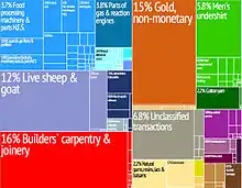 The economy of Eritrea has experienced considerable growth in recent years, indicated by an improvement in gross domestic product (GDP) in October 2012 of 7.5 percent over 2011.[4] However, worker remittances from abroad are estimated to account for 32 percent of gross domestic product.[5] Eritrea has an extensive amount of resources such as copper, gold, granite, marble, and potash. The Eritrean economy has undergone extreme changes due to the War of Independence.