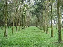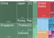 As one of three countries that control the Strait of Malacca, international trade plays a very significant role in Malaysia's economy.[31] At one time, it was the largest producer of tin, rubber and palm oil in the world.[32] Manufacturing has a large influence in the country's economy, accounting for over 40% of the GDP.[33] Malaysia is also the world's largest Islamic banking and financial centre.