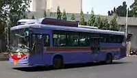 Mumbai's bus services carried over 55 lakh (5.5 million) passengers per day in 2008, which dropped to 28 lakh (2.8 million) in 2015.[53] Public buses run by BEST cover almost all parts of the metropolis, as well as parts of Navi Mumbai, Mira-Bhayandar and Thane.[54] The BEST operates a total of 4,608 buses[55] with CCTV cameras installed, ferrying 45 lakh (4.5 million) passengers daily[56] over 390 routes. Its fleet consists of single-decker, double-decker, vestibule, low-floor, disabled-friendly, air-conditioned and Euro III compliant diesel and compressed natural gas powered buses.[57] BEST introduced air-conditioned buses in 1998.[58] BEST buses are red in colour, based originally on the Routemaster buses of London.[59] Maharashtra State Road Transport Corporation (MSRTC, also known as ST)[60] buses provide intercity transport connecting Mumbai with other towns and cities of Maharashtra and nearby states.[61][62] The Navi Mumbai Municipal Transport (NMMT) and Thane Municipal Transport (TMT) also operate their buses in Mumbai, connecting various nodes of Navi Mumbai and Thane to parts of Mumbai.[63][64]