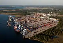 The South Carolina Port Authority (SCPA), chartered in 1942 by the state legislature, owns and operates the state's public seaport facilities as well as the inland ports in Greer and Dillon. The ports in Charleston and Georgetown were in operation before the American Revolution. From the 1970s to the early 2000s, the port was among the most active on the East Coast. However, the failure of an expansion on Daniel Island stifled its growth significantly.[151] Nonetheless, between 2010 and 2020, the ports cargo base grew by 5.4 percent a year.[152] In order to better service the state, SCPA opened two inland ports in Greer and Dillon. Inland Port Greer opened in 2013, and supports the upstate's automotive cluster. Inland Port Dillon opened in 2018, and connects the Pee Dee region to Charleston and the Southeast.[153][154] The Port of Charleston is one of the busiest ports in North America but the fast-silting Port of Georgetown has been effectively decommissioned due to the financial costs of further dredging it.[155][156][157]