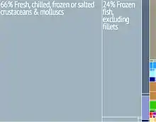 Fishing is the largest part of the economy.[15] Although Lord Shackleton's Report (1982) recommended the setting up of a 200-nautical-mile (370 km; 230 mi) fisheries limit which gave an impetus to the fishing industry, the report did not go into much detail regarding the expansion of the industry.[24] The Falkland Islands Development Corporation which formed as a result of the Shackleton Report provided the impetus for the Falkland Islands to exploit their marine environment.