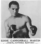 Hoping originally to play baseball as a short stop in the Major Leagues, Martin quit high school before graduation to pursue a professional career in the ring, against the wishes of his father. His father, who had been a successful caterer, had white collar ambitions for his son. Eddie was the sixth of nine sons and five daughters of father Giustino Martino, who managed his large Italian family with his wife in Brooklyn, New York. Several of his older siblings died before he became bantamweight champion.[4] One of his earliest mentors was boxer Mike Doherty, who recognized his early talent as an amateur and managed him throughout his career. His other manager was Mel Cooke.[5][6][7]