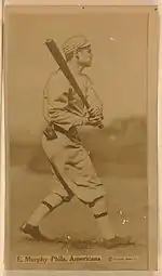 Murphy played in his first major league game on August 26, 1912. During his first season, he posted a batting average of .317 over 33 games.[4] During the 1913 season, he became a "regular" in the outfield and participated in the A's World Series contest against the New York Giants.[4] In 1915, the Chicago White Sox purchased his contract. Murphy played the remainder of the 1915 and next six seasons for the White Sox.[5]