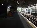 Platform 1 looking south, with trainshed to the left undergoing refurbishment, July 2008