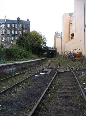 Easter Road Park Halt was opened in 1950,[19] for football traffic to the nearby Hibernian F.C. ground, but by this time the Leith Central branch was nearing its end: on 7 April 1952 the timetabled passenger service closed, although the Easter Road football special trains continued until 1967.[5][4] There was no goods traffic, but the large layout there served as a carriage depot, and from 1957 it became the principal diesel multiple unit servicing depot in Edinburgh. That use ceased on 29 April 1972 and the station buildings were demolished in 1988.