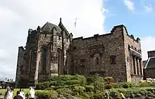 The oldest building in the castle and in Edinburgh is the small St. Margaret's Chapel.[4] One of the few 12th-century structures surviving in any Scottish castle,[42] it dates from the reign of King David I (r.1124–1153), who built it as a private chapel for the royal family and dedicated it to his mother, Saint Margaret of Scotland, who died in the castle in 1093. It survived the slighting of 1314, when the castle's defences were destroyed on the orders of Robert the Bruce, and was used as a gunpowder store from the 16th century when the present roof was built. In 1845, it was "discovered" by the antiquary Daniel Wilson, while in use as part of the larger garrison chapel, and was restored in 1851–1852.[55] The chapel is still used for religious ceremonies, such as weddings.[137]