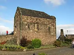Much of the castle was subsequently rebuilt by Regent Morton, including the Spur, the new Half Moon Battery and the Portcullis Gate. Some of these works were supervised by William MacDowall, the master of work who fifteen years earlier had repaired David's Tower.[82] The Half Moon Battery, while impressive in size, is considered by historians to have been an ineffective and outdated artillery fortification.[83] This may have been due to a shortage of resources, although the battery's position obscuring the ancient David's Tower and enhancing the prominence of the palace block, has been seen as a significant decision.[84]