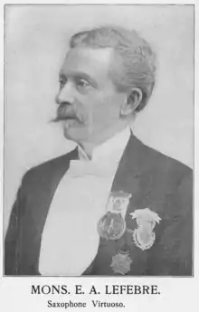 Edward Abraham Lefebre (15 December 1834 – 22 February 1911) was a virtuosic saxophonist in the late nineteenth century, best known for his work with Patrick Gilmore, John Phillip Sousa, C. G. Conn, and the New York Saxophone Quartette Club. His frequent international performances and continued advocacy of the saxophone led to his nickname of "Saxophone King”.