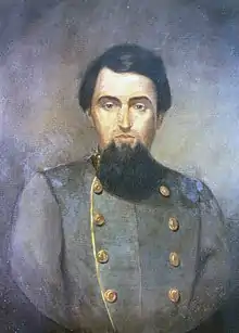 On the third day Battle of Gettysburg, the regiment took part in Pickett's Charge part of the Armistead Brigade. The regiment was positioned on the extreme left flank of the brigade, and when the left-leaning division of Isaac R. Trimble began to retreat, the regiment was threatened with a blow to the flank. Colonel Edmonds decided to turn the regiment to protect the flank, but was at that moment killed by a bullet in the head. Command passed to Major Joseph Cabbell, as Lieutenant-Colonel Powhatan Whittle was already wounded in the shoulder and arm, who was unable to deploy the regiment and ordered him to retreat behind the Emmitsberg road. During the retreat, the flag of the regiment was lost, which was picked up by soldiers of the 8th Ohio Infantry.[5][6][7]