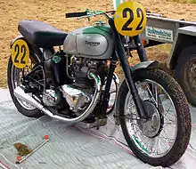 Ernie Lyons won the first Manx Grand Prix on a Tiger 100 built by Freddie Clarke using an alloy wartime generator engine and the unreleased sprung hub in 1946. Turner, away in America, and anti-racing, was furious when he heard, but threw Lyons a victory dinner anyway, and a small batch of replica T100 were made for sale. Clarke resigned and joined AMC as Chief Development Engineer. Bert Hopwood had an argument with Turner over racing, left Triumph, and stayed away for 14 years.[10]