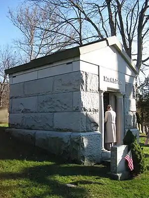 General McAlpin died at 2pm on April 12, 1917 at his home in Ossining of a cerebral hemorrhage.[10] He is buried at the family vault located at the Dale Cemetery in Ossining.