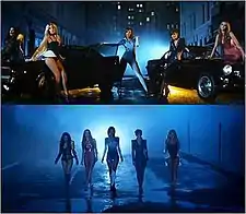 The music video for "Ego" was shot on 23 October 2009 in the United Kingdom, and the final edit of the music video was released on 17 November 2009. The music video was directed by Mike Simpson & Robin Van Calcar and produced by MrsGrey productions. The band took on a superheroes theme and throughout the whole video the band were dressed as superheroes. David Leighton did all the choreography of the music video. The band are seen in many different scenes, some scenes are in a house, some are at a press conference, and many where the band are standing together. The music video has been compared to Watchmen, as the video is set to be in 1985. The male, main role in the music video is played by Waz Ashayer, who is a model, and became famous after appearing on Make Me a Supermodel.[8] The music video features the album's version of the song.