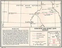 The Egypt–Sudan border (Arabic: الحدود السودانية المصرية) is 1,276 km (793 mi) in length and runs from the tripoint with Libya in the west to the Red Sea in the east.[1] The eastern section of the border is subject to a territorial dispute between the two states.
